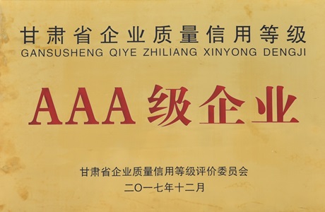 甘肅省企業(yè)質量信用等級AAA級企業(yè)