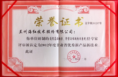 甘肅省優(yōu)秀新產品新技術榮譽證書