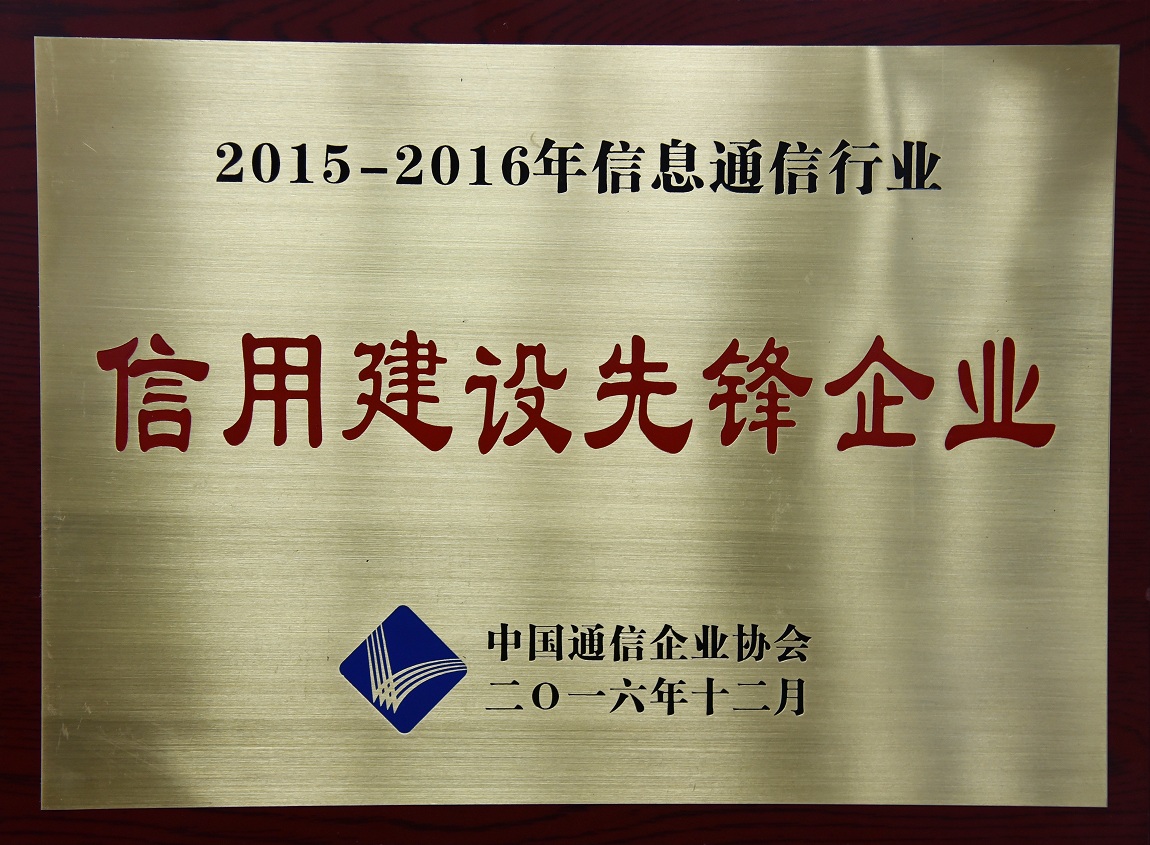 我公司被中國通信企業(yè)協(xié)會(huì)評(píng)為2015-2016年信息通信行業(yè)信用建設(shè)先鋒企業(yè)