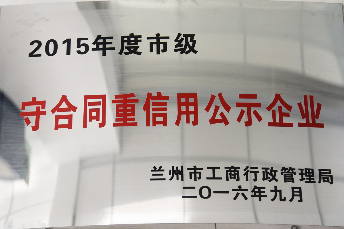 我公司榮獲2015年度“守合同、 重信用”企業(yè)榮譽(yù)稱號(hào)
