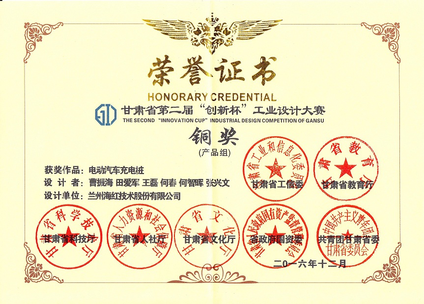 我公司“電動(dòng)汽車充電樁”產(chǎn)品榮獲甘肅省第二屆“創(chuàng)新杯”工業(yè)設(shè)計(jì)大賽(產(chǎn)品組)銅獎(jiǎng)