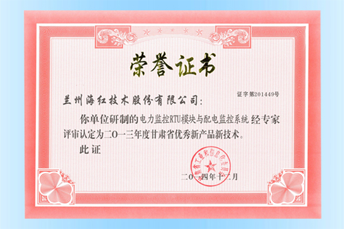 我公司“電力監(jiān)控RTU模塊與配電監(jiān)控系統(tǒng)”被認定為甘肅省優(yōu)秀新產品新技術