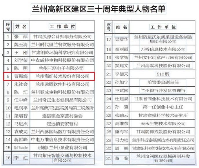 我司榮獲蘭州高新區(qū)建區(qū)30周年“突出貢獻(xiàn)企業(yè)”榮譽(yù)稱號